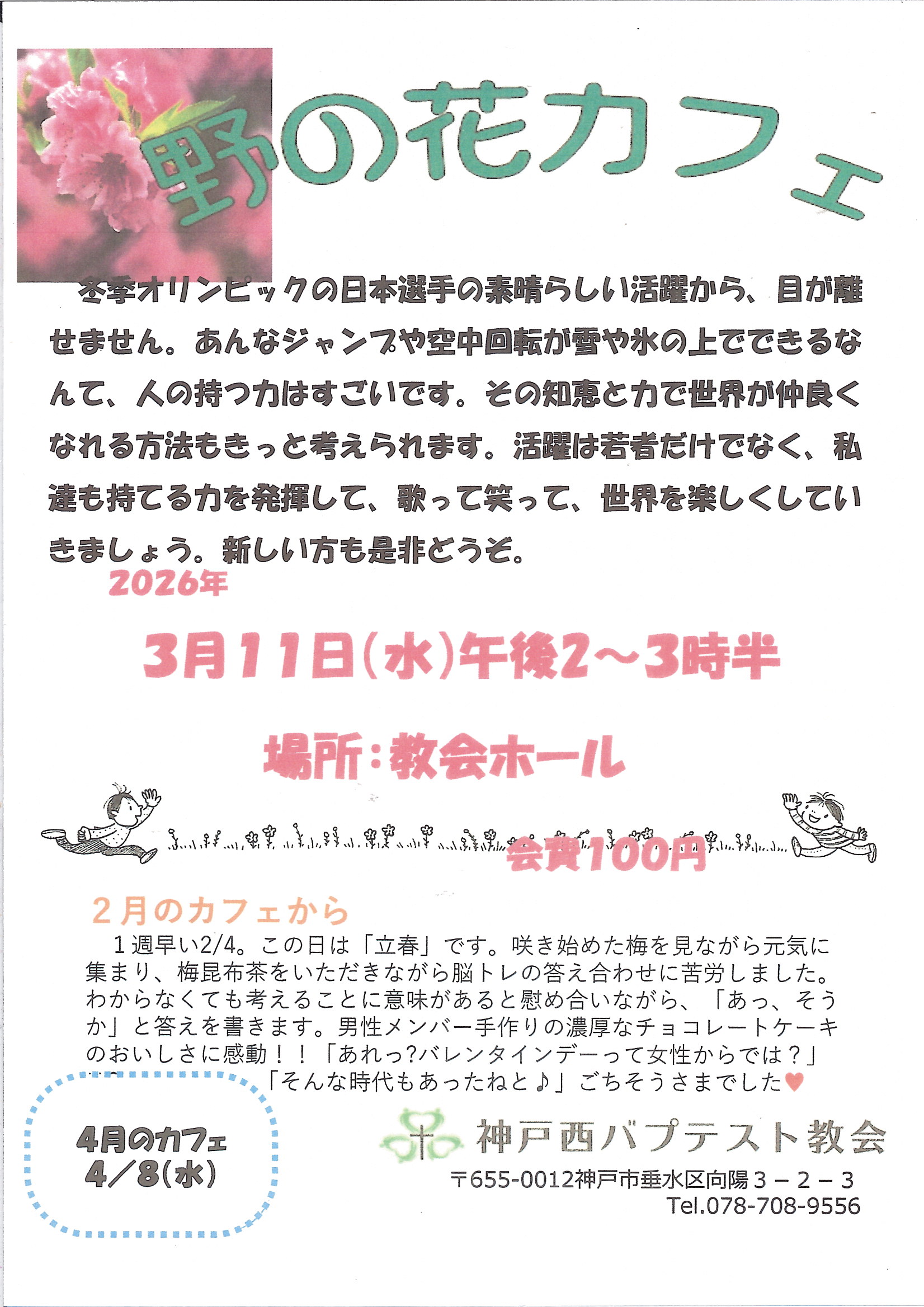 神戸西バプテスト教会は教会のある地域の方々と共にありたいと願っています。